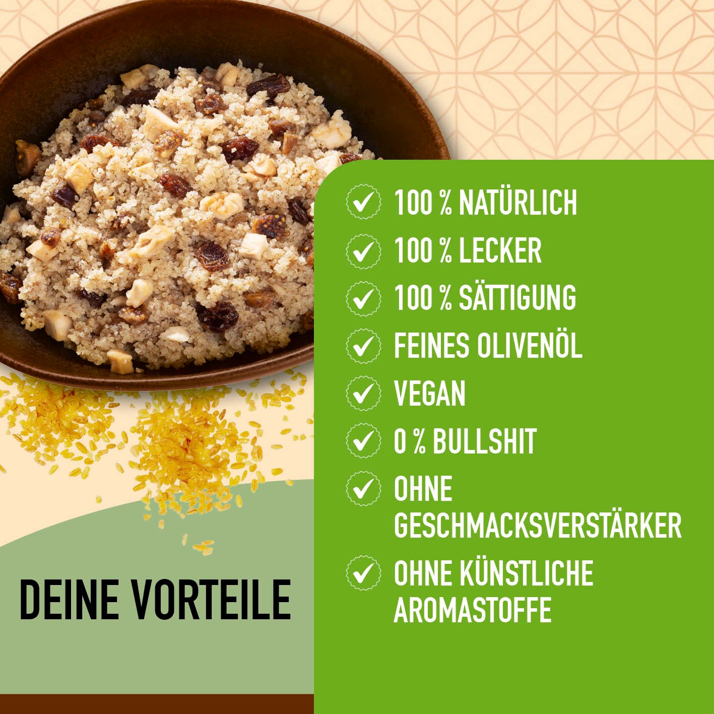 - LECKER. GUT: BULGUR – Bulgur ist nicht nur eine super Quelle für Ballaststoffe. sondern auch richtig lecker! Seine nussige Textur passt perfekt zu vielen Gerichten und sorgt für Abwechslung auf deinem Teller!