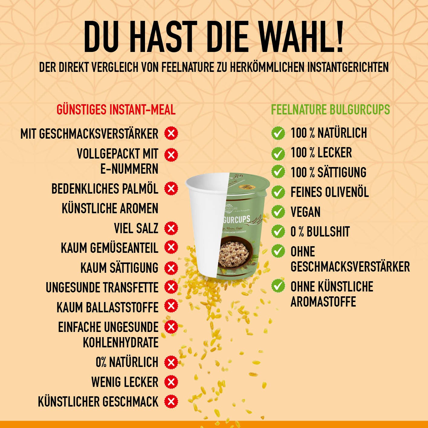 - VEGAN & AUSGEWÄHLTE ZUTATEN – Gönn dir eine köstliche und nahrhafte Mahlzeit mit den vollständig veganen Bulgurcups die frei von Palmöl. Geschmacksverstärkern und künstlichen Aromen sind.